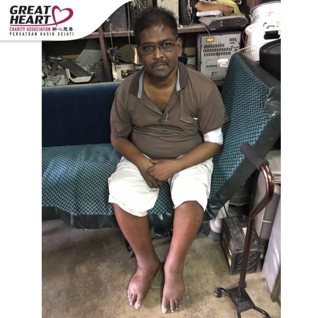 Mr. Kumararaja is a kidney disease patient who live together and supported by his wife in his shophouse. His wife worked in the semiconductor factory and worked 12 hours daily in order to support the household expense and his dialysis fee. Mr. Kumararaja really hoped that everyone to help him and his wife in just his dialysis cost as he felt bad and guilty for relying on his wife these years. Great heart charity will be helping Kumararaja in 6 months, Rm720 monthly dialysis subsidies, to reduce his burden and we hope more people can support us in helping him leading a better life.