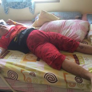 2013十月脸部中风丧失说话能力。2014九月全身中风几乎瘫痪。加上糖尿病严重必须把左脚锯掉。养女为了照顾无法工作,还有一个7岁的孩子。生活都是靠邻居施舍。