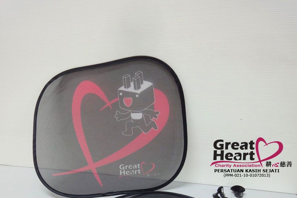 The blinding sun light that shines through the side windows makes drivers feel uncomfortable while driving. Our Great Heart Sunshade comes in 2 pcs per pack with four holders that can be firmly attached to the windows to block off part of the sun light so that drivers will not be distracted by the blinding light. Amount collected from sold merchandises will be fully utilized in charity purposes.
