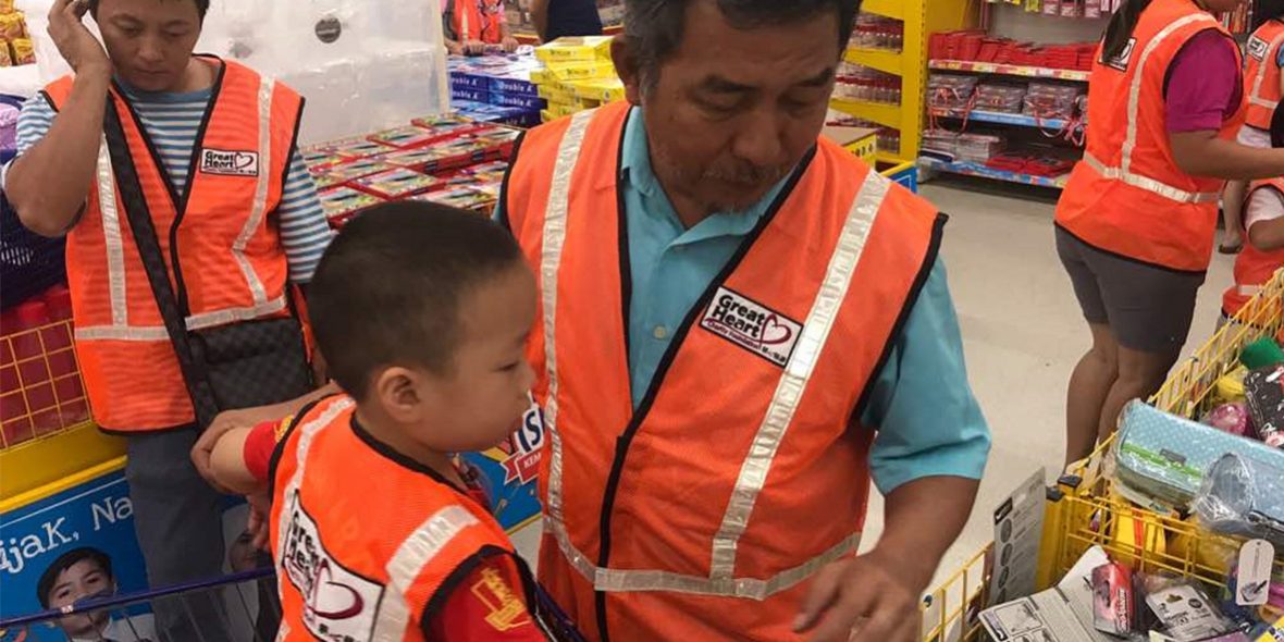 购物地点是位于巴生武吉丁宜的特易购百货公司,来自耕心慈善协会7位的义工和8 位的学生家长今早与这一群27位小朋友购买开学用品。早上约10时,义工、家长和小朋友陆续抵达特易购百货公司。在活动开始前,活动负责人向大家为今天的活动做个简单的介绍。每一位小朋友有马币150令吉购买校服,校鞋,书包,文具和其他开学用品。