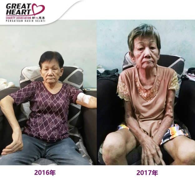 Lau Chai Fook, 72 year old. He was married with no children and he lives together with his wife. Due to the citizen registration problem in the 60’s, his red identity card makes him could not apply the benefits for Jabatan Kebajikan Malaysia and he needs to pay for huge medical costs even if admitted into government hospital. Therefore, he just use the medicine temporarily to control his heart ailment.Lao Chai Fook’s foot is not in a good condition and needed to rely on stick for walking. His wife has eyes problem and unable to work as well. They only can rely on their brothers and sisters for the groceries help.Great Heart Charity has been funded 6 months rental fee for Lau Chai Fook and it will be stopping soon.